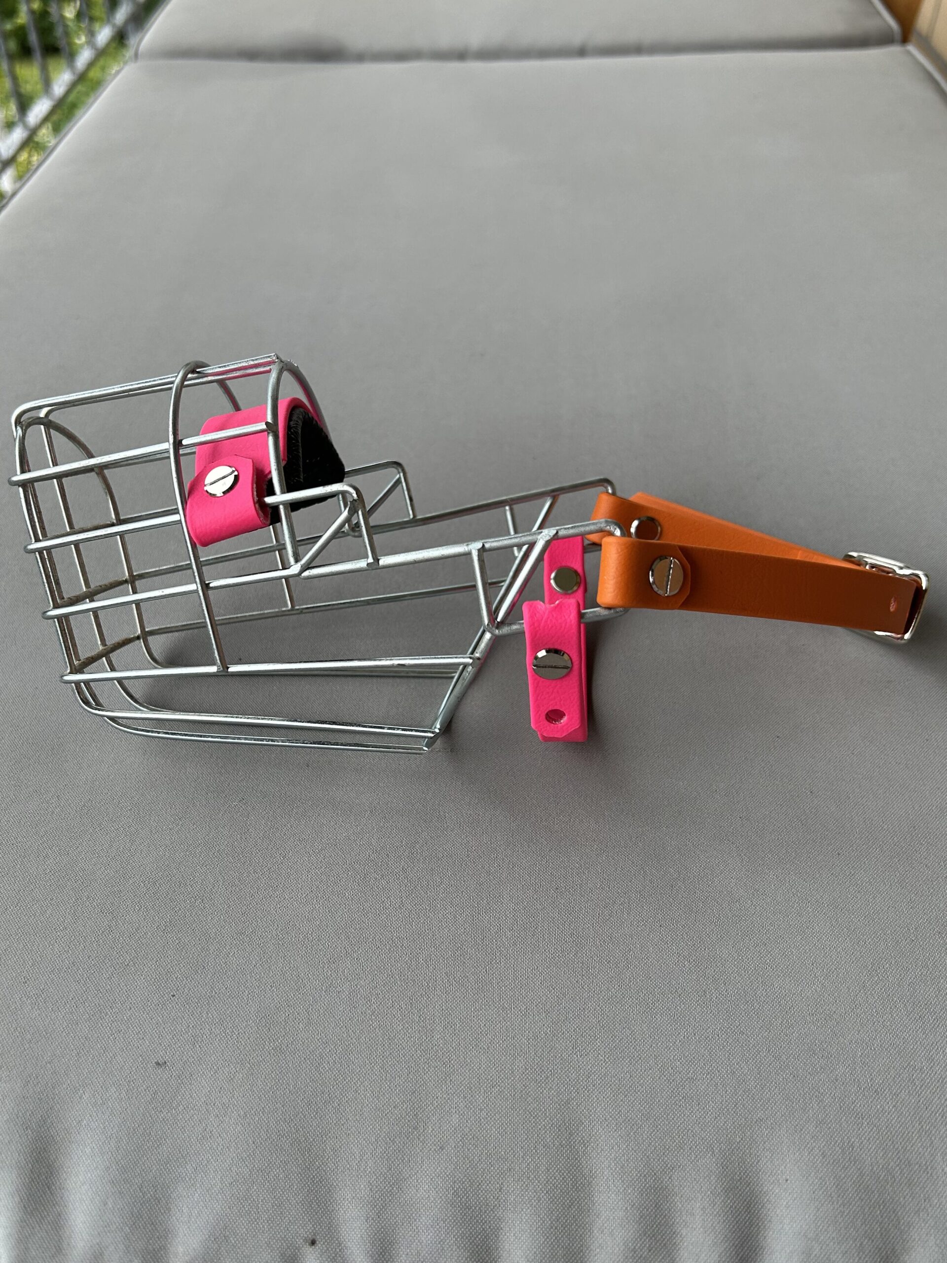 Ich habe unterschiedliche Maulkörbe im Angebot, so dass wir ein für deinen Hund passendes Modell finden. Um die ideale Passform zu gewährleisten und auch für etwas mehr Individualität passe ich den Maulkorb gerne an und tausche beispielsweise das Nasenpolster oder die Nackenriemen aus oder ergänze einen Kehlriemen.